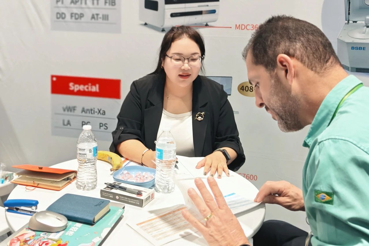 九強生物的產品以精準的檢測性能、高效的工作效率和可靠的質量贏得了廣泛贊譽。展會現場,九強生物的展位始終人頭攢動,來自世界各地的參觀者紛紛駐足,與公司專業團隊深入交流,了解產品的特點和優勢。九強團隊以熱情、專業的態度接待每一位參觀者,詳細介紹產品的技術亮點和臨床應用經驗,與客戶分享九強生物在體外診斷領域的創新理念和實踐成果。通過深入的交流,九強生物不僅讓世界更好地了解了中國體外診斷技術的發展水平,也進一步拓展了國際業務交流渠道,與眾多潛在客戶建立了緊密聯系。